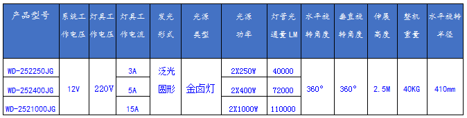 車載移動照明設備升降高度為2.5m,適合如依維柯、全順、大型SUV以及其它中、大汽車配備。