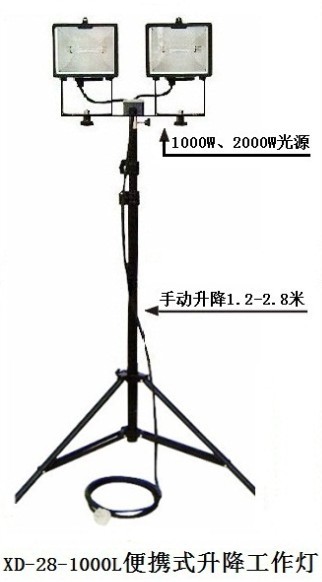 便攜式升降工作燈由2個(gè)500W品牌燈頭組成,可根據(jù)現(xiàn)場需要將每個(gè)燈頭單獨(dú)做上下、左右大角度調(diào)節(jié)旋轉(zhuǎn)實(shí)現(xiàn)360°全方位照明;整體照明遠(yuǎn)近兼顧,照明亮度高、范圍大,飛利浦燈泡壽命長。