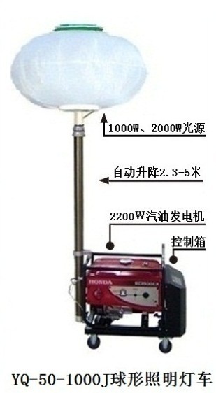 月球燈可直接使用發(fā)電機組供電,也可接通220V市電長時間照明;采用發(fā)電機組供電一次注滿燃油連續(xù)工作時間可達(dá)13小時。